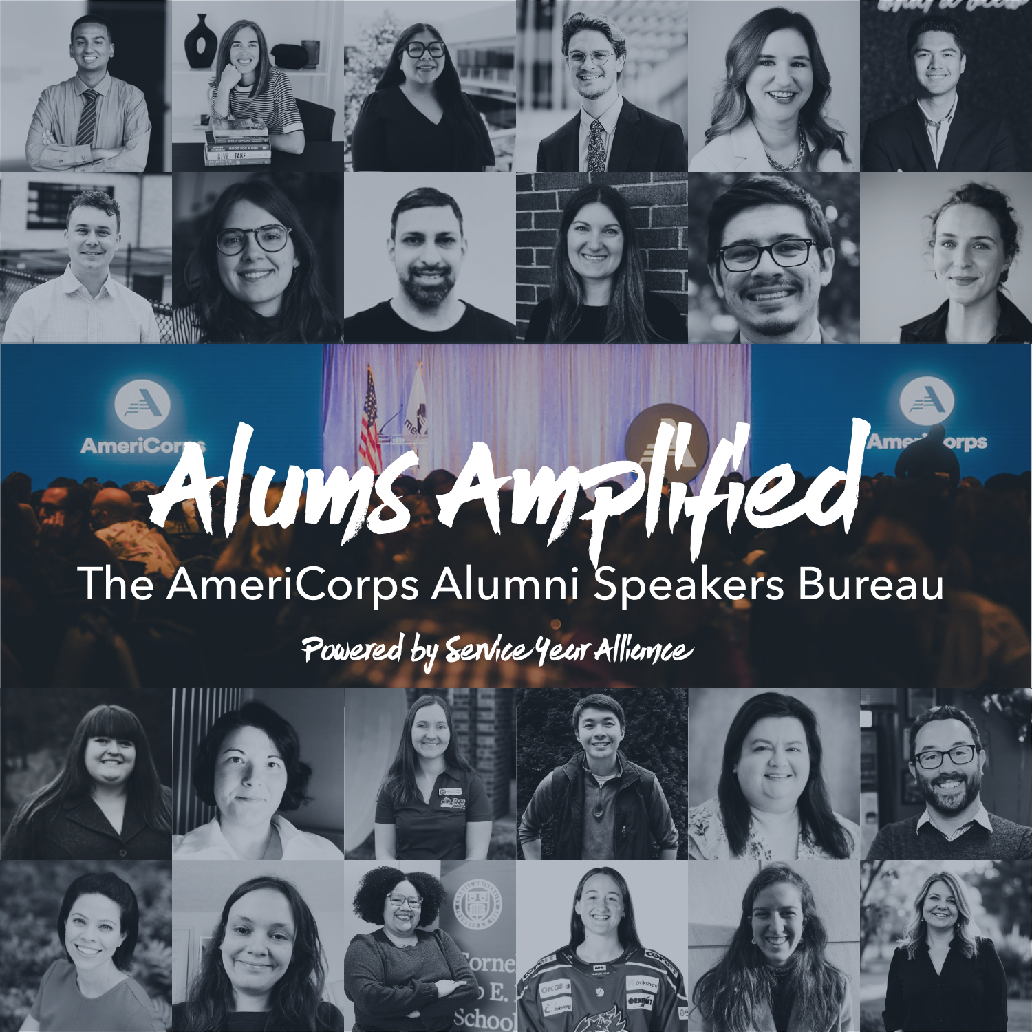 Alums Amplified is a national speakers bureau that lifts up the voices of AmeriCorps alums who are passionate about sharing their service stories and advocating for the future of national service.