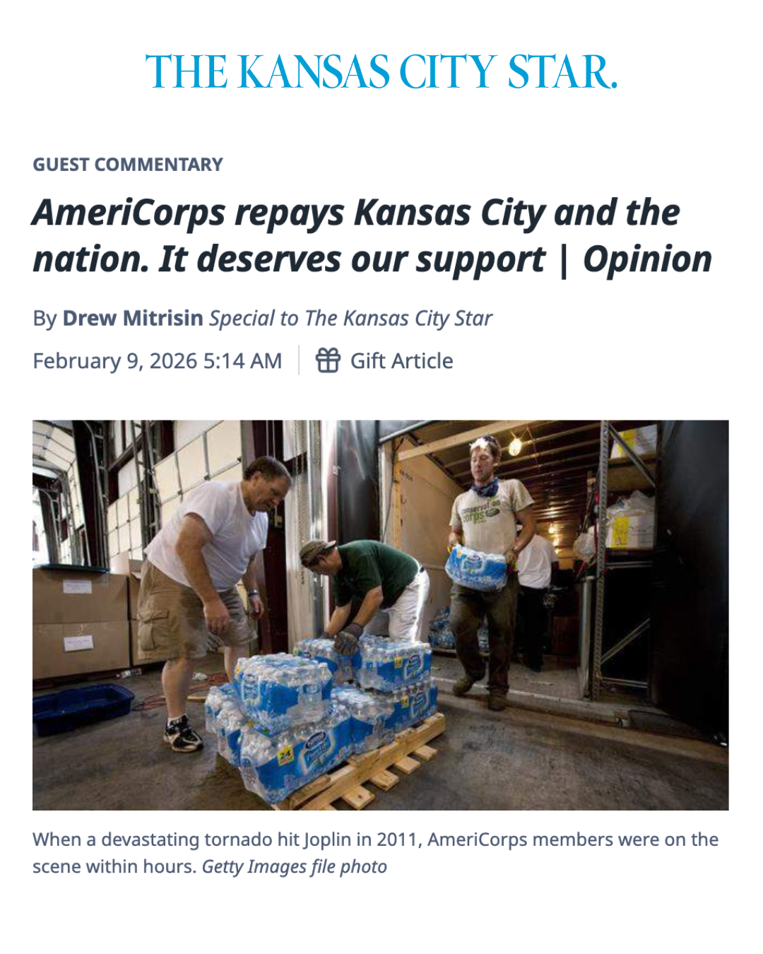 Alums Amplified member Drew Mitrisin reflects on his service with City Year Washington DC as the launching point toward his career in public policy, and connects us to the bipartisan support for AmeriCorps and “what we can build together.” "We often talk about “boots on the ground” as a measure of force or enforcement, but AmeriCorps represents a different kind of footprint. It represents a government that shows up to tutor a struggling reader, help an older adult navigate a health crisis or rebuild a town after a tornado." |
